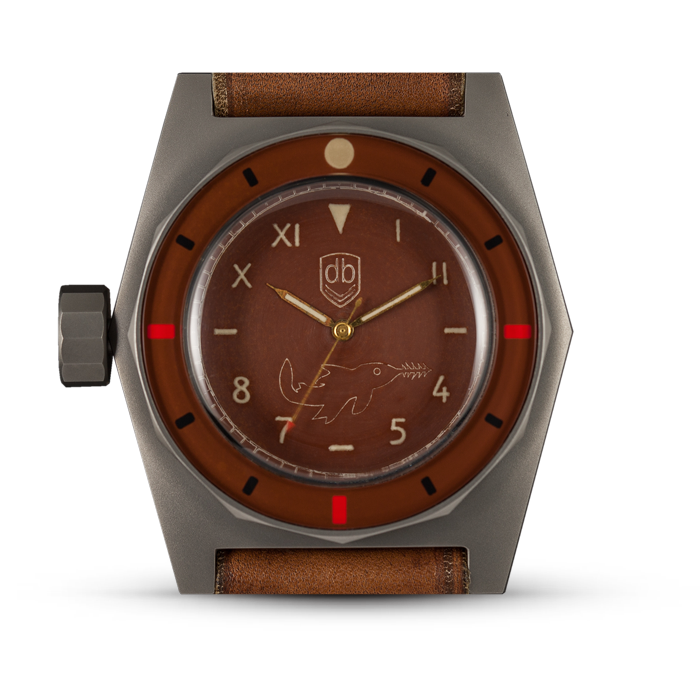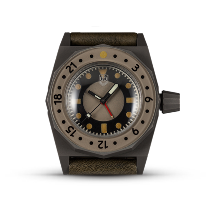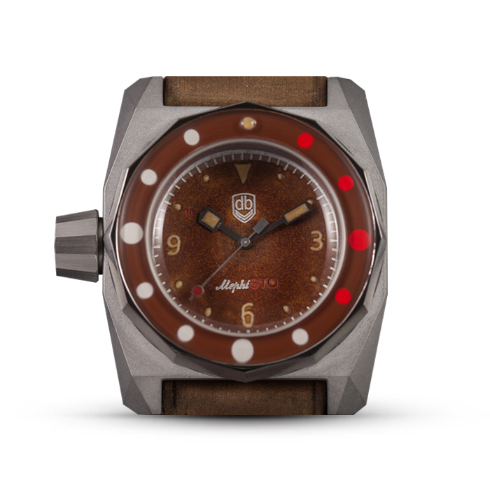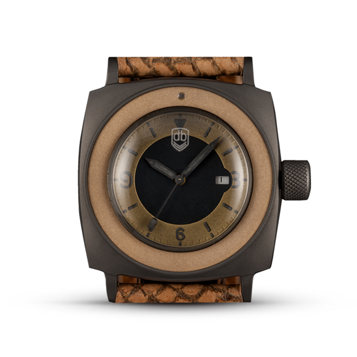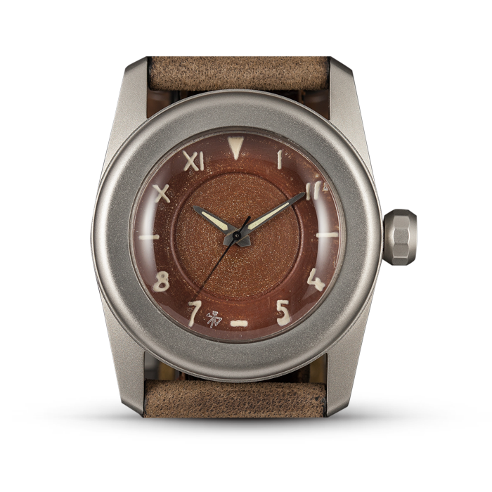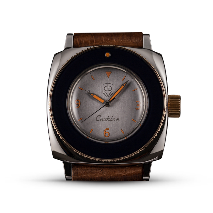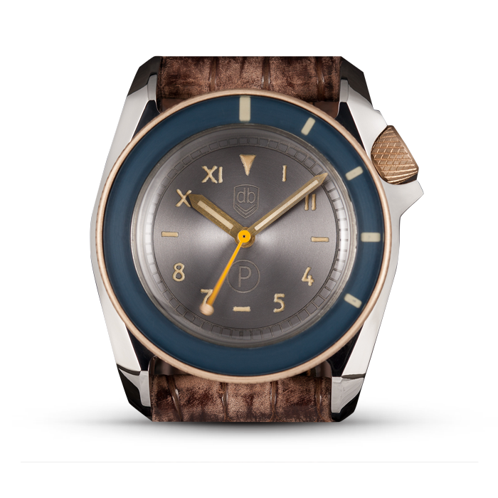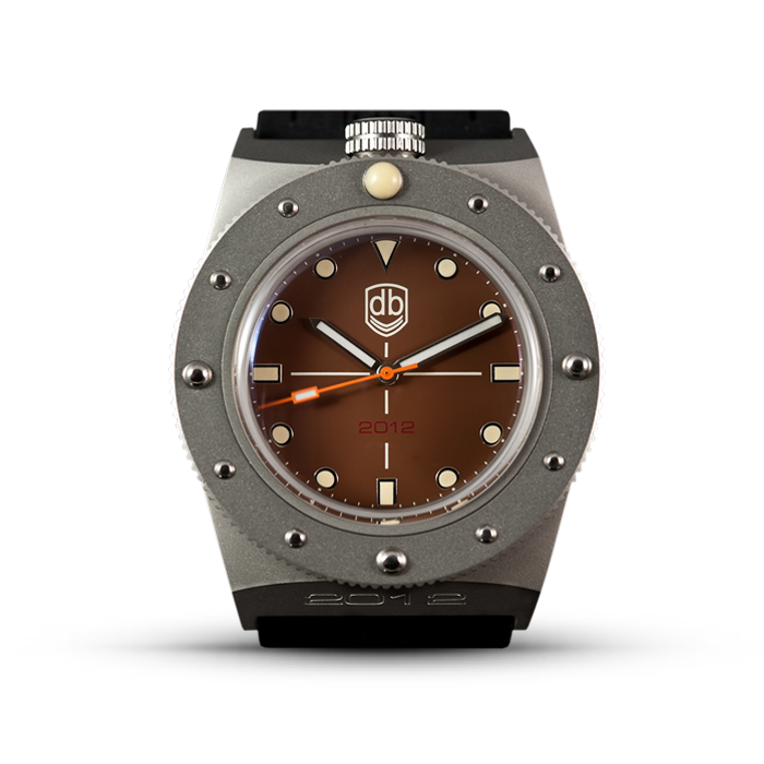 stainlesssteelgreyblastedandbronzewithstainlesssteelpvdcoatedbezel/crown