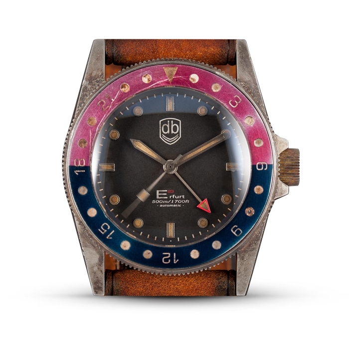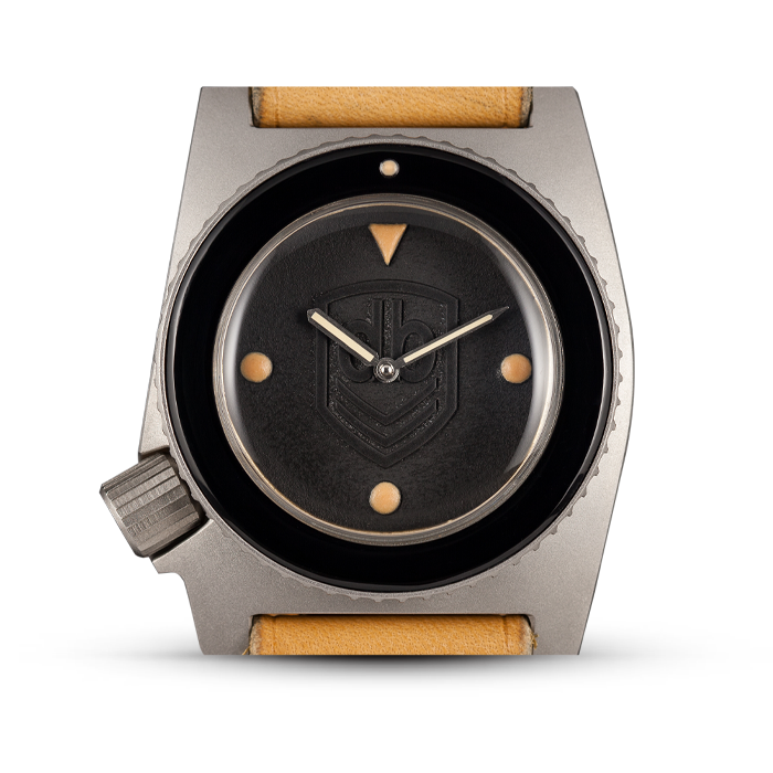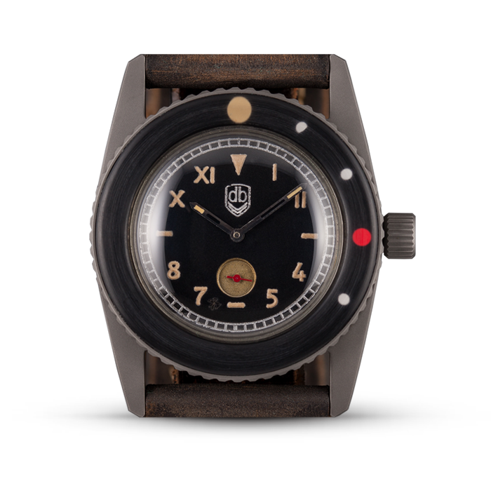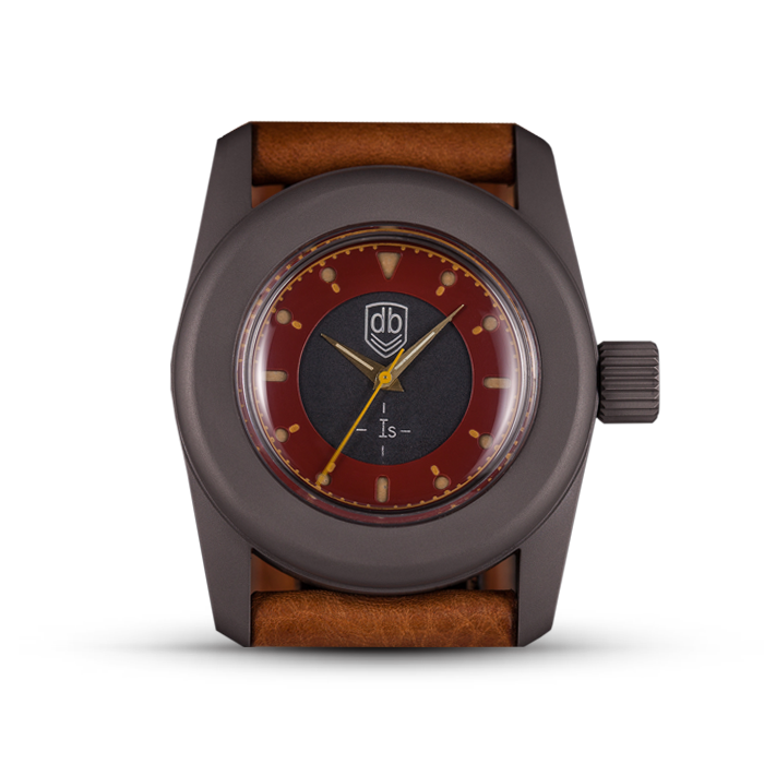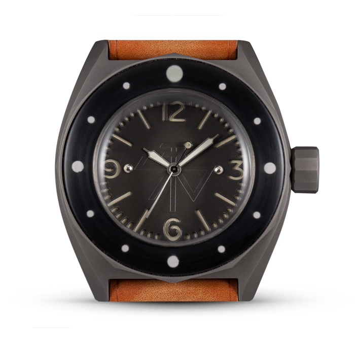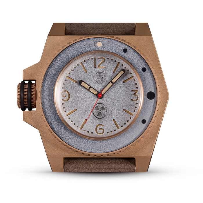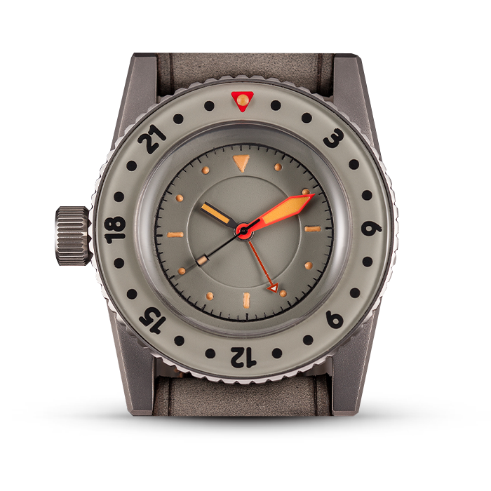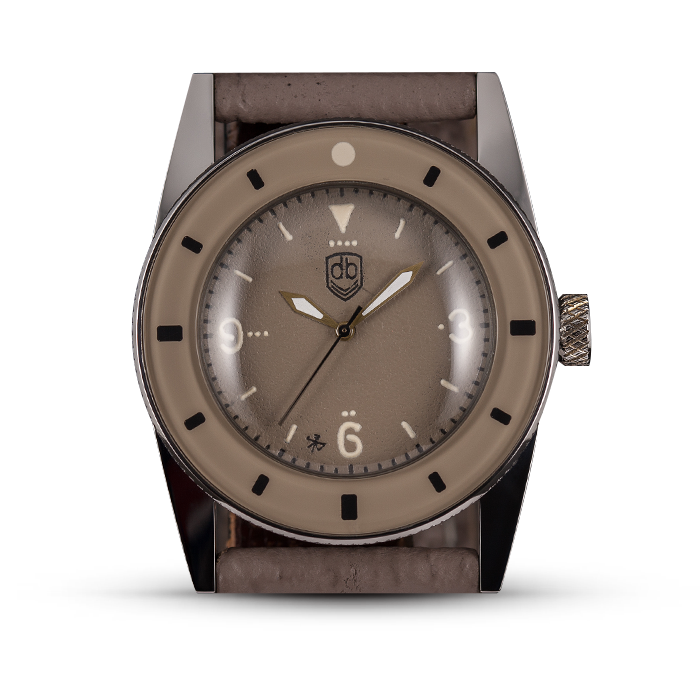 stainlesssteelgreyblastedandbronzewithstainlesssteelpvdcoatedbezel/crown